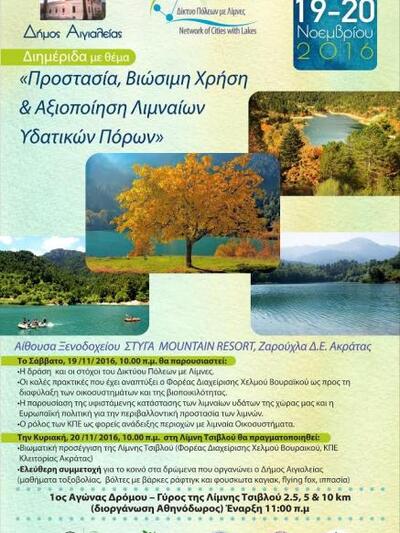 Ο Δήμος Αιγιαλείας, με την υποστήριξη του Αθλητικού Συλλόγου Αιγίου «ΑΘΗΝΟΔΩΡΟΣ Ο ΑΙΓΙΕΥΣ», διοργανώνει τον 1ο Αγώνα Δρόμου – Γύρο της Λίμνης Τσιβλού 10 χλμ. για ενήλικες και δύο παράλληλους αγώνες δρόμους 5 και 2,5 χλμ. για παιδιά. Ο αγώνας θα πραγματοποιηθεί την Κυριακή, 20 Νοεμβρίου 2016, ώρα 11.00 π.μ.