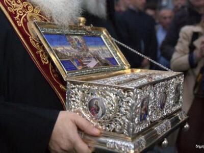 Επικεφαλής της συνοδείας από το Άγιον Όρος είναι ο Καθηγούμενος της ιεράς Μονής Βατοπαιδίου, αρχιμανδρίτης Γέροντας Εφραίμ, ο οποίος στην ομιλία του το Σάββατο 5/11 το απόγευμα, ανέφερε πως στην κατάσταση που είναι η Ελλάδα μας, στις δύσκολες εποχές που ζούμε, η ελπίδα μας είναι η Παναγία.