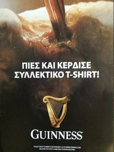 Με την αγορά δύο ποτηριών Guinness 500ml κερδίζετε ένα συλλεκτικό Τ-shirt με το λογότυπο της αγαπημένης σας μπύρας!!