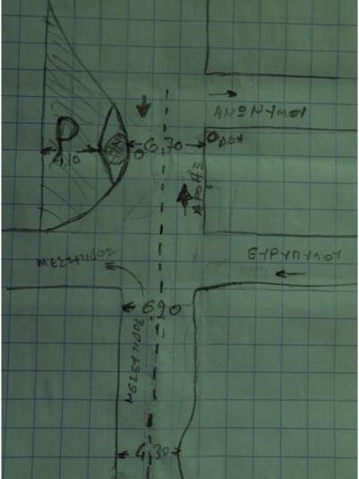 Το πλάτος του δρόμου από την πλευρά της ανόδου μετρήθηκε, από το τσιμεντένιο ρείθρο της ρομβοειδούς νησίδας έως και το απέναντι κράσπεδο στα 6,70m, ενώ από την πλευρά της καθόδου στα 4,10m.