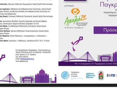 Το Δ.Σ. του Ομίλου Εθελοντών κατά του Καρκίνου "ΑγκαλιάΖΩ" Ν.Αχαΐας πραγματοποιεί τη Δευτέρα 14 Νοεμβρίου ημερίδα με θέμα "Νεότερα Δεδομένα στον Καρκίνο του Παγκρέατος". Η ημερίδα θα πραγματοποιηθεί17.00-21.30 στο Ξενοδοχείο Astir.