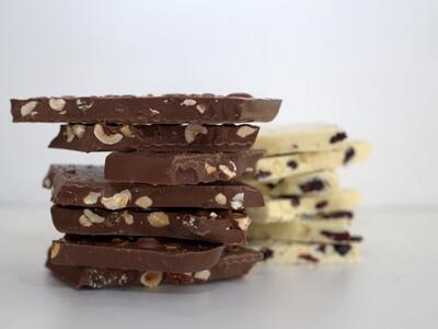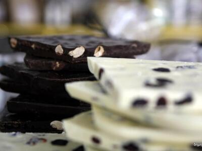 Παράλληλα από τις χειροποίητες σοκολάτες που διατίθενται σε πλάκες των 100 γραμμαρίων αλλά και σε πλάκες γίγας του ενός κιλού, μπορείτε να επιλέξετε μια από τις πέντε γεύσεις (γάλακτος με μπισκότο, γάλακτος με φουντούκια, λευκή σοκολάτα με κράνμπερις, λευκή σοκολάτα με μπισκότα και μαύρη σοκολάτα με καβουρντισμένα αμύγδαλα).