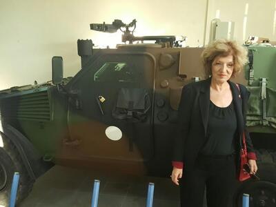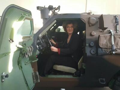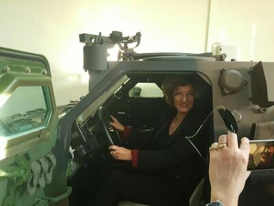 Εξάλλου η κα Αναγνωστοπούλου δεν μπόρεσε να αντισταθεί, να μην καθίσει στη θέση του εντυπωσιακού αμφίβιου το οποίο φυλάσσεται στις εγκαταστάσεις του ΚΕΤΧ και σε μια από τις αίθουσες όπου εκπαιδεύονται οι στρατιώτες του σώματος.