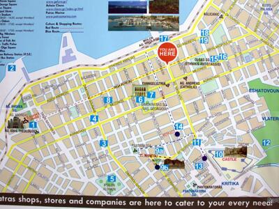 Στο πλαίσιο αυτό οι χάρτες αποτυπώνουν τον Άγιο Ανδρέα, την Αchaia Clauss, το Κάστρο της Πάτρας, το Ρωμαϊκό Ωδείο, το νέο Αρχαιολογικό Μουσείο Πατρών, η Γέφυρα Ρίου-Αντιρρίου κ.α..Αναφέρονται επίσης το Καρναβάλι, η έκθεση Patras IQ, το Διεθνές Φεστιβάλ Πάτρας κλπ.