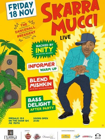 Η ΓΙΑΦΚΑ, την Παρασκευή 18 Νοεμβρίου, υποδέχεται τον Skarra Mucci, ο οποίος επισκέπτεται για πρώτη φορά τη χώρα μας και θα εμφανιστεί σε Αθήνα, Θεσσαλονίκη και Πάτρα.