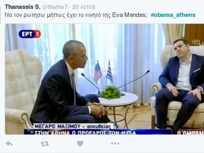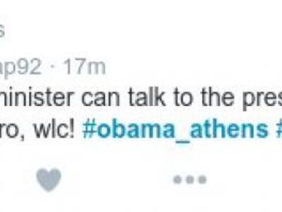 Ο ενικός που χρησιμοποίησε ο Αλέξης Τσίπρας στις πρώτες του δηλώσεις προς τον Μπαράκ Ομπάμα, δεν πέρασε φυσικά απαρατήρητος από τους χρήστες του twitter.Διατηρώντας το hashtag obama_athens, οι χρήστες του twitter με χιούμορ αλλά και με αρκετή δόση κριτικής, αναφέρθηκαν στην επιλογή του Ελληνα πρωθυπουργού να μιλήσει στον ενικό προς τον πρόεδρο των Ηνωμένων Πολιτειών Αμερικής.