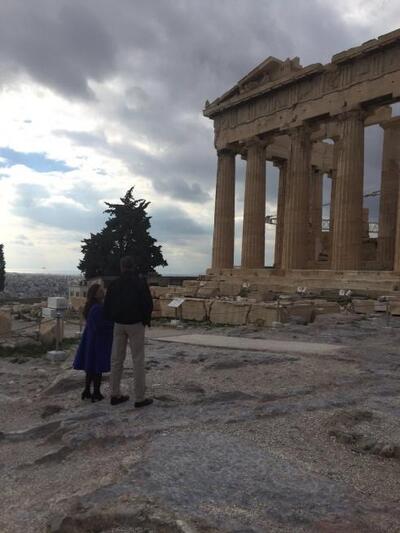 Στο Ιερό Βράχο τον ξενάγησε η προϊσταμένη της εφορίας αρχαιοτήτων Αθηνών και Ελένη Μπάνου.