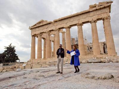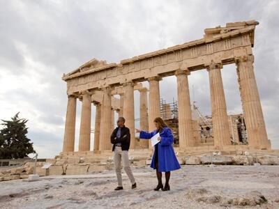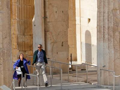 Στην Ακρόπολη δεν επετράπη να είναι κανένας ξένος τουρίστας παρά μόνο η συνοδεία και οι άνδρες ασφαλείας του Αμερικανού Προέδρου. Τον κ. Ομπάμα συνόδευσε και ξενάγησε η Dr. Eleni Banou – Ελένη Μπάνου, Προισταμένη της Εφορείας Αρχαιοτήτων Αθηνών, η οποία όπως ακούστηκε, έχει κάνει τις μεταπτυχιακές της σπουδές στις ΗΠΑ και πιο συγκεκριμένα στο Πανεπιστήμιο της Πενσυλβάνια.