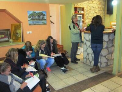 Η ομάδα των φοιτητριών είχε την ευκαιρία να συμμετάσχει στο εργαστήριο των νηπίων και στη συνέχεια, να επισκεφτεί τους χώρους του φορέα και να γνωρίσει την ιστορία του μέσα από διαδραστικές διεργασίες. Η συνάντηση εμπλουτίστηκε με ανταλλαγή ιδεών και εμπειριών πάνω στις παιδαγωγικές προσεγγίσεις των δύο χωρών και τις πολιτισμικές διαφορές και ομοιότητες.