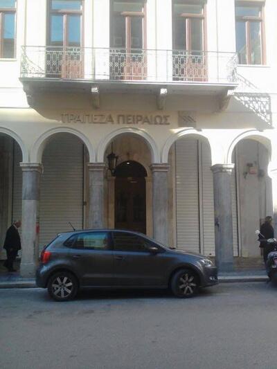 Για λόγους ασφαλείας τράπεζες κατέβασαν ρολά αποκλείοντας και τα ΑΤΜ. Ωστόσο νωρίτερα η Εθνική Τράπεζα στην πλατεία Γεωργίου και η Πειραιώς τα άνοιξαν εκ νέου.