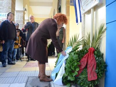 Αμέσως μετά, πορεύτηκαν με προορισμό το χώρο που στεγαζόταν η παλιά Ασφάλεια. Εκεί, η Πρόεδρος του Δημοτικού Συμβουλίου, Κατερίνα Γεροπαναγιώτη, κατέθεσε στεφάνι, τιμώντας τους αγωνιστές που βασανίστηκαν κατά τη διάρκεια της στρατιωτικής δικτατορίας.