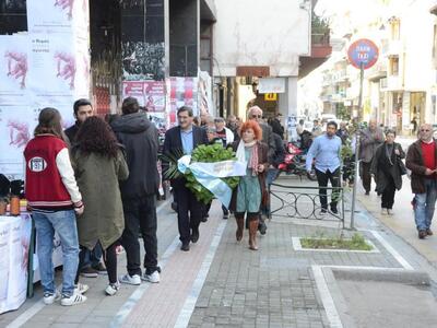 "Ο Δήμαρχος, μετά την κατάθεση του στεφανιού, δήλωσε: «Τιμάμε μαζί με το λαό και τη νεολαία της πόλης μας, το λαϊκό ξεσηκωμό του Νοέμβρη του ’73.