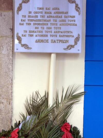 Την επέτειο του Πολυτεχνείου τιμά σήμερα και η Πάτρα. Το πρωί έγινε κατάθεση στεφάνων στην παλιά Ασφάλεια από εκπροσώπους αρχών και φορέων.