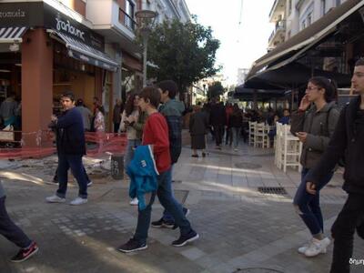 Έσφυζε από ζωή ο πεζόδρομος της Ρήγα Φεραίου το πρωί της Πέμπτης 17 Νοεμβρίου. Απ΄ ότι φαίνεται μετά από την σχολική τους γιορτή για το Πολυτεχνείο οι μαθητές βρέθηκαν στο κέντρο και έκαναν τη βόλτα τους.