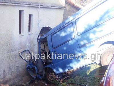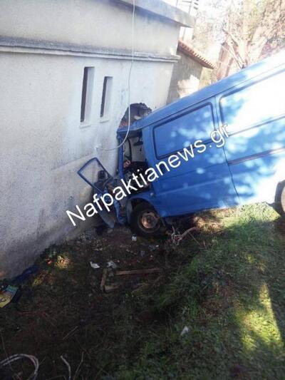 Σοβαρό τροχαίο ατύχημα σημειώθηκε σήμερα στα Πιτσιναίικα Ναυπακτίας. Αυτοκίνητο τύπου «κλούβα» εξετράπη της πορείας του και καρφώθηκε πάνω σε σπίτι. Από την σύγκρουση τραυματίστηκε ο οδηγός του αυτοκινήτου στο πόδι και χρειάστηκε η επέμβαση της Π.Υ. Ναυπάκτου για να τον απεγκλωβίσει. Σύμφωνα με πληροφορίες του Nafpaktianews.gr η κάτοικος του σπιτιού δεν κινδύνευσε .Από την σφοδρότητα της σύγκρουσης άνοιξε τρύπα στον τοίχο.