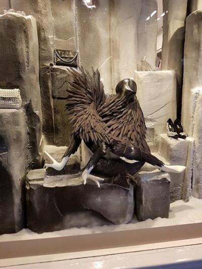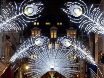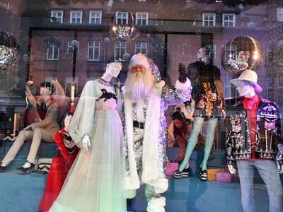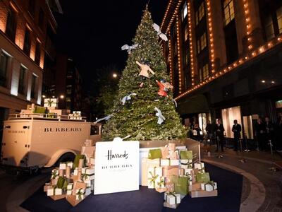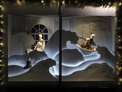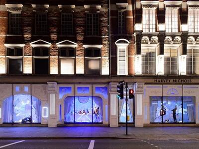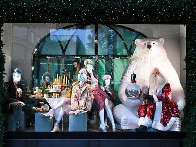 Το ιστορικό «παλάτι» της ευδαιμονίας Harrods για πρώτη φορά συνάπτει συνεργασία για το γιορτινό του ντεκόρ. Ο στόχος είναι να δείχνει μεμιάς την βρετανική του καταγωγή με «συνεταίρο» τον οίκο Burberry. «Α very British fairytale» το σύνθημα με γκαμπαρντίνες, καρώ, ομπρελάκια, vintage στοιχεία και μίνιμαλ εικαστικά κύμματα σε πρώτο πλάνο. Στην ίδια περιοχή το Knightsbridge, χαζεύουμε και τις βιτρίνες του Harvey Nichols. Φέτος έχουν θέμα την ιταλική Αναγέννηση, την όπερα, τη Βενετία και το Μιλάνο. Με βασικό χρωματικό τόνο το λευκό, οι κούκλες αιωρούνται, φορούν μάσκες και αποπνέουν «τεατράλε» διάθεση. Χρησιμοποιήθηκαν 100.000 αστραφτερές χιονόμπαλες και σύννεφα από αληθινό μαλλί δυο χιλιομέτρων!