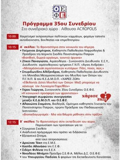 Εξάλλου αύριο στις 10 το πρωϊ θα πραγματοποιηθεί το συνέδριο της Ομοσπονδίας με σημαντικούς ομιλητές.