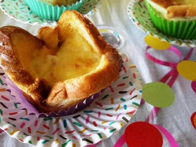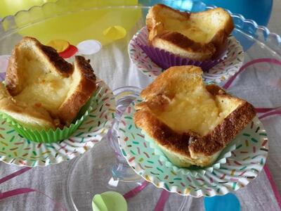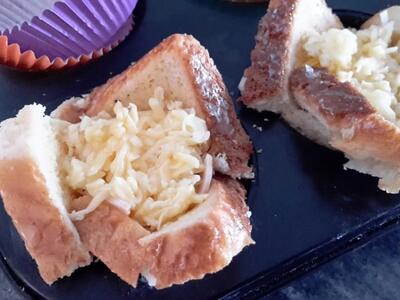 Παίρνουμε ένα ταψί με θήκες για μαφινς και σε κάθε θήκη βάζουμε τη μία φέτα του τοστ.