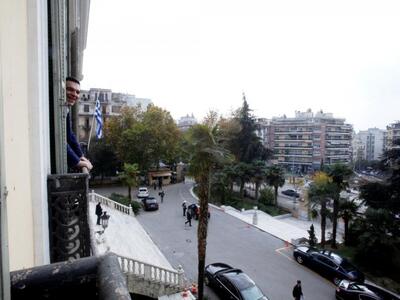 Ο πρωθυπουργός Αλεξης Τσίπρας εγκαινίασε το Σάββατο τα νέα εντυπωσιακά γραφεία στη Θεσσαλονίκη και πόζαρε για το φωτογραφικό φακό κοιτάζοντας τη θέα από τα παράθυρα. Μάλιστα δήλωσε ότι θα επισκέπτεται τη συμπρωτεύουσα κάθε 15 ημέρες.