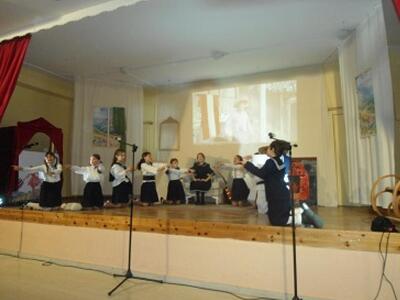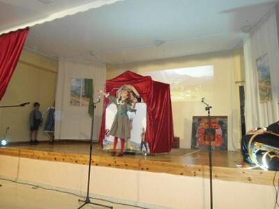 Ακολούθησε πολιτιστική εκδήλωση της Δ2' τάξης όπου παρουσιάστηκε θεατρικό- διασκευή του έργου " Η Μελωδία της ευτυχίας" με την επιμέλεια της θεατρολόγου του Στρουμπείου κ. Τέτης Ζέρβα που καταχειροκροτήθηκε από τους παρευρισκομένους. Συντελεστές της παράστασης ήταν επίσης η κ. Φωτεινή Καρπή εκπ/κός της τάξης, η κ. Λένα Μαλωίνα καθηγήτρια Αγγλικών που δίδαξε τα τραγούδια και η κ. Μαρία Μανωλοπούλου Παπακωνσταντοπούλου γονέας του Σχολείου- γραφίστρια που επιμελήθηκε τα σκηνικά.