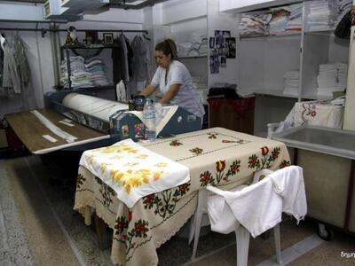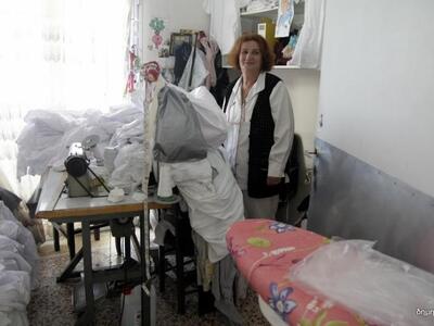 Η Αθηνά Ράμμου εργάζεται στο ραφείο του Ασύλου 25 χρόνια, Φτιάχνει σεντόνια, ρόμπες για τους ασθενείς, στολές για το προσωπικό. « Όταν δεν δουλεύω Σαββατοκύριακο μου λένε ότι τώρα θα είμαστε μόνοι μας. Έρχονται εδώ όταν εργάζομαι και μιλάμε».