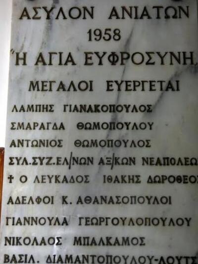 Το Σωματείο με την επωνυμία “ΚΟΙΝΩΝΙΚΗ ΑΛΛΗΛΕΓΓΥΗ – ΑΣΥΛΟ ΑΝΙΑΤΩΝ ΠΑΤΡΩΝ – Η ΑΓΙΑ ΕΥΦΡΟΣΥΝΗ”, εδρεύει στην Πάτρα και είναι ειδικώς αναγνωρισμένο ως φιλανθρωπικό σύμφωνα με τις διατάξεις του Ν.Δ 1111/1972.Συστήθηκε το 1957 με εμπνευστή και πρωτεργάτη τον αείμνηστο Αρχιμανδρίτη, π. Ιάκωβο Λιαρρομάτη, ενώ το 1963 όλες οι εγκαταστάσεις του Ασύλου Ανιάτων στεγάστηκαν στο νέο ιδιόκτητο κτήριο στην πλατεία Παντοκράτορος. Η σημερινή δυναμικότητα είναι 120 κλίνες, οι οποίες είναι πάντοτε σχεδόν κατειλημμένες, ενώ υπάρχει και λίστα αναμονής συνήθως γύρω στα 10 με 20 άτομα.