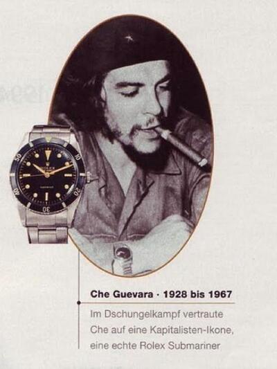 Ποιο ήταν το κοινό σημείο ανάμεσα στον Κάστρο και τον Τσε Γκεβάρα; Τα Rolex που φορούσαν αυτοί οι μπουρζουά επαναστάτες στο χέρι. Δύο ο πρώτος, ένα Daydate και ένα Submariner, ένα ο δεύτερος, ως τον θάνατό του.