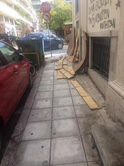 Το περιστατικό σημειώθηκε χθες. Σήμερα ωστόσο που περάσαμε από το σημείο, τα ξύλινα μπάζα είχαν απομακρυνθεί.