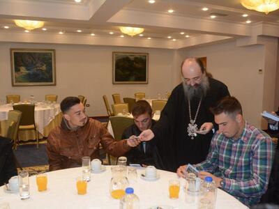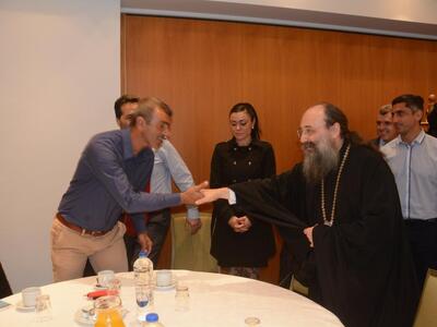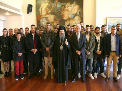 Μετά το προσκύνημα στον Άγιο Ανδρέα η αποστολή της Παναχαϊκής συναντήθηκε με τον Μητροπολίτη Πατρέων. Συγκεκριμένα τους ποδοσφαιριστές της Παναχαϊκής δεξιώθηκε σε αίθουσα κεντρικού ξενοδοχείου της Πάτρας ο Σεβασμιότατος Μητροπολίτης Πατρών κ.κ. Χρυσόστομος.