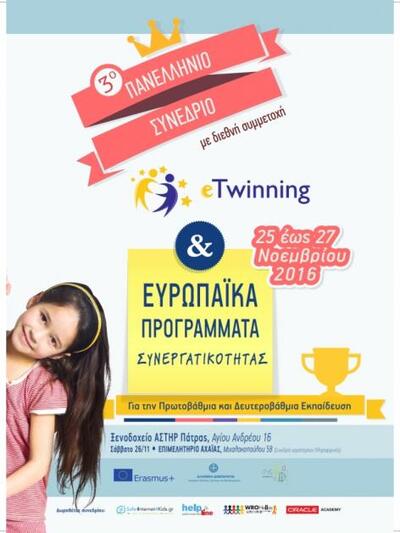 Και φέτος η Εθνική Υπηρεσία Υποστήριξης (ΕΥΥ) eTwinning διοργάνωσε στην Πάτρα, το 3ο Πανελλήνιο Συνέδριο «Αξιοποίηση των ΤΠΕ και της ανοικτότητας στα συνεργατικά σχολικά προγράμματα για την Πρωτοβάθμια και Δευτεροβάθμια Εκπαίδευση». Περισσότεροι των 420 συνέδρων, εκπαιδευτικοί από την Ελλάδα, συμμετείχαν στις εργασίες του, ενώ παρουσιάστηκαν 70 εργασίες σε παράλληλες συνεδρίες, 13 workshops με ενεργό συμμετοχή, 6 κεντρικές εισηγήσεις και αντίστοιχες προσκεκλημένες ομιλίες.