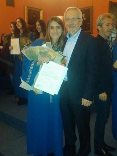 Η κόρη του προέδρου του Εμπορικού Συλλόγου της Πάτρας Γιώργου Ρώρου πήρε το μεταπτυχιακό της στην ειδική αγωγή - λογοθεραπεία - συμβουλευτική και ο μπαμπάς ήταν εκεί. Περιχαρής και με καμάρι, πόζαρε δίπλα στην κόρη του. Μια στιγμή που γεμίζει περηφάνια κάθε γονέα.