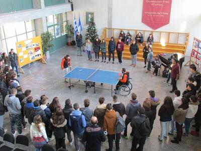 Την Παρασκευή 2 Δεκεμβρίου 2016, στο πλαίσιο της παγκόσμιας ημέρας ατόμων με αναπηρία, μέλη του αθλητικού σωματείου «Ήφαιστος Πατρών» επισκέφτηκαν τα Αρσάκεια Σχολεία και συζήτησαν με μαθητές του Γυμνασίου και του Λυκείου. Πραγματοποιήθηκε επίδειξη των αθλημάτων μπάσκετ, τοξοβολίας και επιτραπέζιας αντισφαίρισης. Οι μαθητές, πολλοί από τους οποίους συμμετείχαν ενεργά στις δράσεις, εντυπωσιάστηκαν από τον τρόπο με τον οποίο οι άνθρωποι αυτοί αντιμετωπίζουν τις δυσκολίες και κατορθώνουν με τη δύναμη της ψυχής τους να ενσωματώνονται στο κοινωνικό σύνολο και να πετυχαίνουν σπουδαίες αθλητικές επιδόσεις.