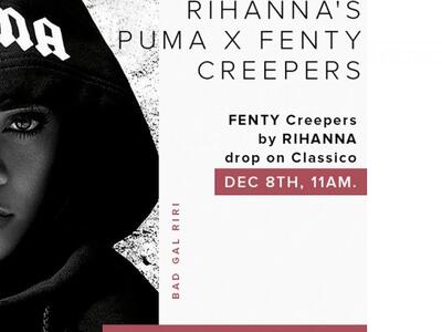Το pop idol Rihanna ξέρει καλύτερα από τον καθένα πώς να πουλάει παπούτσια προκαλώντας οικουμενικό «ξεσηκωμό». Από την Πέμπτη 8 Δεκεμβρίου στο Classico της Μαιζώνος φθάνουν τα νέα της αναπαυτικά και απίστευτα στυλάτα sneakers με βελούδινη υφή, τα οποία σχεδίασε για το brand συνεργασίας Puma X Fenty. Κάθε ενημερωμένη fashionista ας σπεύσει να τα αποκτήσει. Αν θυμάστε πρόσφατα έγινε διεθνώς χαμός για την ίδια ετικέτα, εξαιτίας των πλαστικών πέδιλων –παντοφλών με τη γούνα.