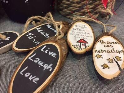 Στο ζεστό τους μαγαζι επιμελούνται βεβαια και γουρια-κατασκευες μοναδικές στα μετρα σας γράφοντας σε ξύλο, μάυροπινακες, γενικά ότι μηνημα εσεις θελετε.