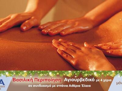 • Βασιλική Περιποίηση: Αγιουβερδικό με 4 χέρια σε συνδυασμό με σπάνια Αιθέρια Έλαια: 50 ευρώ (1 ώρα)