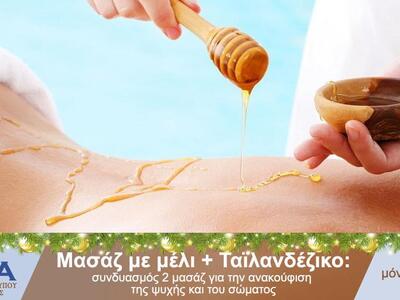 • Μασάζ μέ Μέλι + Ταϊλανδέζικο: συνδυασμός 2 μασάζ για την ανακούφιση της ψυχής και του σώματος: 60 ευρώ (2 ώρες)