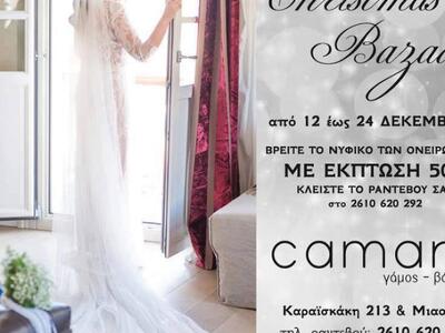 Χριστουγεννιάτικο bazaar με υπέροχα νυφικά φορέματα πραγματοποιεί ο οίκος Camara από τις 12 μέχρι τις 24 Δεκεμβρίου. Μπορείτε να βρείτε το νυφικό των ονείρων σας με έκπτωση 50%!.