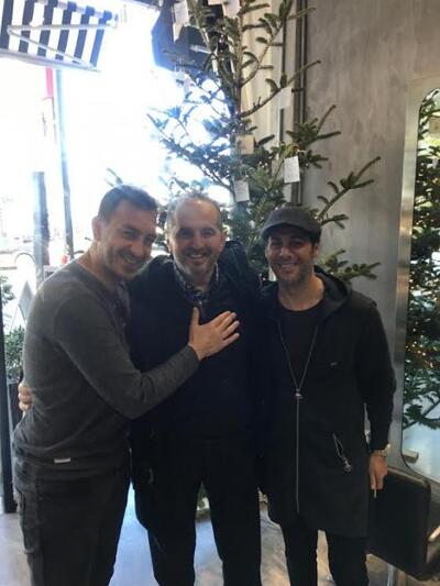 Στη φωτογραφικό στιγμιότυπο ο Ανδρέας Νικολάου ποζάρει χαμογελαστός ανάμεσα στον προπονητή της Αναγέννησης Ψαθοπύργου, Βασίλη Φίλιππα και τον γνωστό κομμωτή Άκη Γαλάτη, κατά τη διάρκεια συνάντησης των τριών στο κομμωτήριο του τελευταίου, στην Ηρώων Πολυτεχνείου.
