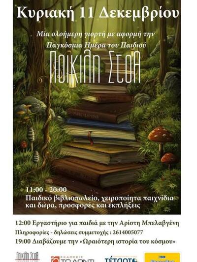 Αυτή την Κυριακή 11 Δεκεμβρίου 2016 το βιβλιοπωλείο «Το Δόντι» του Ανδρέα Τσιλίρα και η Ποικίλη Στοά στην οδό Παντανάσσης και Ρ. Φεραίου, στην Πάτρα αφιερώνουν μία ημέρα στα παιδιά.