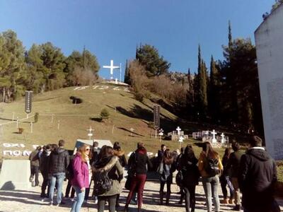 Πραγματοποιήθηκε επίσκεψη στο Μουσείο Καλαβρυτινού Ολοκαυτώματος και στο λόφο του Καπή όπου και τοποθετήθηκε πανό με το μήνυμα ''Ποτέ ξανά φασισμός''. Στο αντιφασιστικό μονοήμερο συμμετείχε και ο ΣΥΡΙΖΑ Καλαβρύτων όπου μας συνόδευε μέχρι και το τέλος της επίσκεψης μας στα Καλάβρυτα, συμβάλλοντας με τις ιστορικές του γνώσεις στην ουσία της επίσκεψης. Πολλά άλλωστε από τα μέλη του είναι απόγονοι των εκτελεσθέντων, από τα γερμανικά ναζιστικά στρατεύματα, Καλαβρυτινών.
