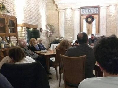 Το απόγευμα της ίδιας ημέρας η Τ.Ο. Πάτρας του Ποταμιού οργάνωσε ανοιχτή εκδήλωση – συζήτηση με θέμα “Πρόσφυγες & Μετανάστες: το Ποτάμι συζητά και προτείνει λύσεις”, με κεντρικό ομιλητή το Γιώργο Τσαούση, στο ξενοδοχείο 'Βυζαντινό', στο κέντρο της πόλης. Ο Υπεύθυνος Μεταναστευτικής Πολιτικής στο Ποτάμι, αφού ενημέρωσε για την πρωινή επίσκεψη – αυτοψία στη δομή φιλοξενίας της Μυρσίνης, έκανε στη συνέχεια μία παρουσίαση τόσο της σημερινής κατάστασης στο ζήτημα του μεταναστευτικού – προσφυγικού όσο και των θέσεων του κινήματος. Ακολούθησαν ερωτήσεις και τοποθετήσεις των παρευρισκομένων ενώ αποφασίστηκε η ανάληψη πρωτοβουλίας από την Τοπική Ομάδα για τη συγκέντρωση και προσφορά αναγκαίων ειδών προς τους πρόσφυγες, εν όψει εορτών. Την εκδήλωση παρακολούθησε πολύς κόσμος τόσο από την Πάτρα και τις γύρω περιοχές όσο και από την Αθήνα.