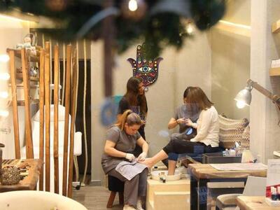 Ταυτόχρονα, ξεκινήσαμε και την περιποίηση των χεριών, με ιδιαίτερη επιμέλεια ομολογώ. Παρότι είμαι αρκετά απαιτητική και τελειομανής, δεν αγχώθηκα καθόλου. Κατάλαβα από την πρώτη στιγμή πόσο πιο τελειομανείς είναι εκείνες με τη δουλειά τους και αφέθηκα εντελώς. Τα αμέτρητα μπουκαλάκια με χρώματα στα ράφια με περίμεναν για να διαλέξω ένα. Και ποιο να πρωτοδιαλέξεις; Ζήτησα από τη Μαρία να μου προτείνει εκείνη κάποιο. Παθιασμένη με τη δουλειά της... μου εξήγησε όλα -όλα όμως σας λέω- τα nail trends του Χειμώνα!