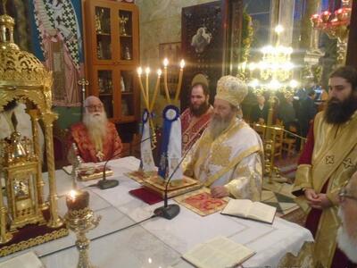 Κατά τόν Ἑσπερινό ὁ ὁποῖος ἐτελέσθη στόν Ἱερό ἱστορικό Ναό τοῦ Παντοκράτορος  Πατρῶν, ὅπου φυλάσσεται ἡ χαριτόβρυτος καί ἁγία χείρ τοῦ Ἁγίου Ἱερομάρτυρος Ἐλευθερίου, ἐχοροστάτησε ὁ Σεβασμιώτατος Μητροπολίτης Πατρῶν κ.κ. Χρυσόστομος. Τὸν θεῖο λόγο ἐκήρυξε ὁ ὁρισθείς ὑπό τοῦ Σεβασμιωτάτου, ὁ Πανοσιολογιώτατος Ἀρχιμ. π. Ἰωακείμ Σταματόπουλος.