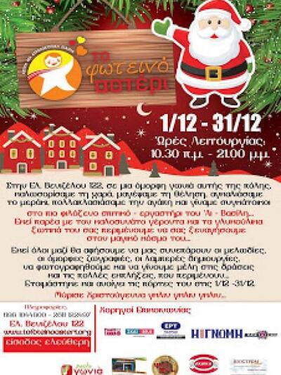 Δράσεις για τα χριστούγεννα από το Φωτεινό Αστέρι με στόχο για κάθε παιδικό χεράκι που απλώνεται ζητώντας από κάπου να πιαστεί για βοήθεια να υπάρχει ένα χέρι ενηλίκου που μπορεί να προσφέρει το δικό του. Όπως τονίζουν οι εθελοντές του Φωτεινού Αστεριού: «Αυτός ο ενήλικας δεν είναι άλλος από έμενα και εσένα, αυτό το χέρι δεν είναι άλλο από το δικό σου και το δικό μου.