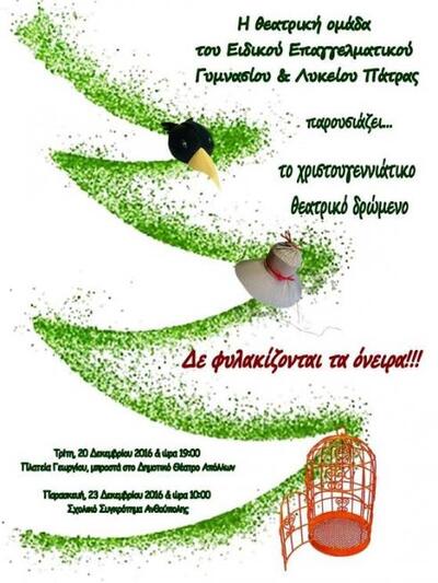 Θεατρικό δρώμενο από το ΤΕΕ Ειδικής αγωγής θα παρουσιαστεί την Τρίτη 20 Δεκεμβρίου στην πλατεία Γεωργίου, μπροστά από το Δημοτικό Θέατρο στις 7 το απόγευμα. "Ελπίζουμε οι άνθρωποι να προσπαθήσουμε αυτές τις γιορτές να ξαναβρούμε την ανθρωπιά μέσα μας και να αλλάξουμε πορεία, οδεύοντας προς μια καλύτερη προοπτική του εαυτού μας !