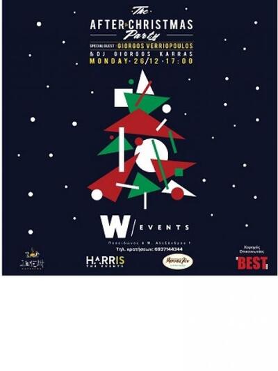 Το εν λόγω πάρτι έχει ώρα προσέλευσης στις 5 μ.μ. και αναμένεται να δελεάσει τις πιο γνωστές παρέες της πόλης, που ακολουθούν πιστά τις πολύ fun διοργανώσεις του Χάρη σε παραδοσιακά γιορτινές μέρες. Πάντα τα πάρτι του διαθέτουν εξαιρετικά «ανεβαστική» χορευτική μουσική και προκαλούν μεγάλο κοσμικό συναπάντημα. Το «Τhe After Christmas Party» θα φιλοξενηθεί για πρώτη φορά στην ανακαινισμένη, στολισμένη και ατμοσφαιρικά φωταγωγημένη σάλα του W Events στο Ρίο. Aπαντες θα ξεφαντώσουν με τον special guest dj Γιώργο Βερριόπουλο και τον σταθερό dj στα πάρτι του Χάρη Παναγόπουλου, Γιώργο Καρρά. Προβλέπεται και εορταστικό finger food του Semeli Catering και επίκαιρα γλυκίσματα Μουσελίν. (Aναγκαιες και απαραιτητες οι κρατησεις, τηλ 6937 144 344)