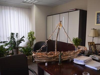 Η υπουργός πολιτισμού Λυδία Κονιόρδου πάγωσε με αυτό που είδε, μπαίνοντας στο γραφείο του περιφερειάρχη Δυτικής Ελλάδας Απόστολου Κατσιφάρα. Με την καλή έννοια, καθώς το βλέμα της αιχμαλώτισε μια ιδιαίτερη χριστουγεννιάτικη κατασκευή πάνω στο γραφείο του περιφερειάρχη. Ένα χειροποίητο χριστουγεννιάτικο καραβάκι κέρδισε τις εντυπώσεις και μάλιστα η υπουργός ζήτησε να μάθει λεπτομέρειες για τον τρόπο κατασκευής του, από τον δημιουργό.
