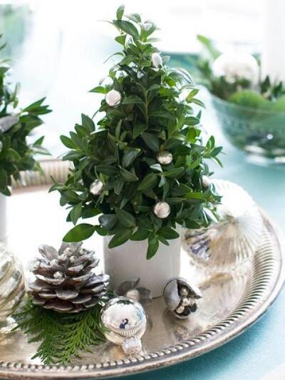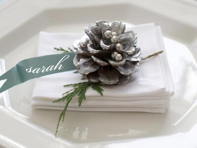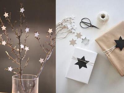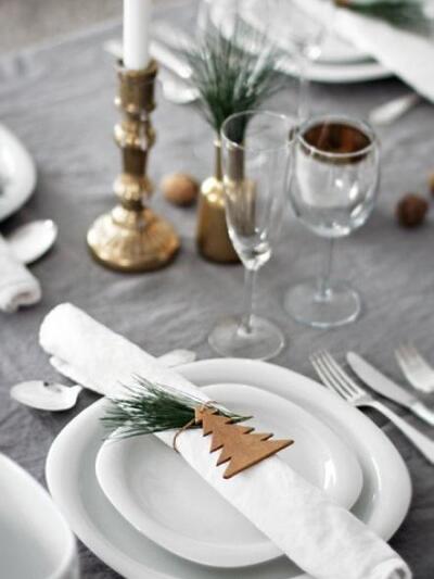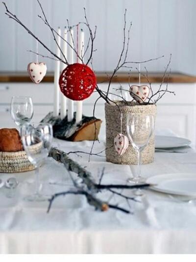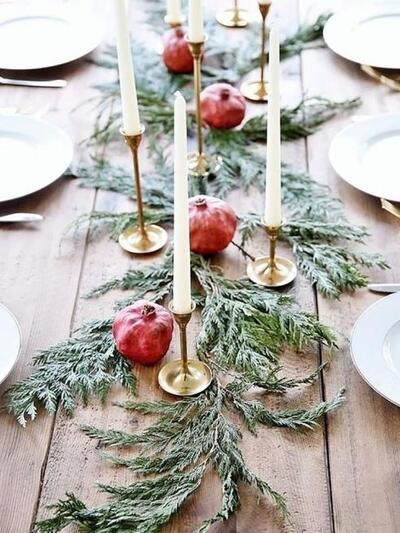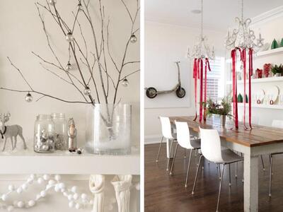Ένα φυσικό κλαδί με αραιές μπάλες ή αστεράκια σε αρμονικούς χρωματικούς τόνους, κάποιες κορδέλες στο κρεμαστό φωτιστικό της τραπεζαρίας, φυσικά κουκουνάρια στα πιάτα, ένα κλωναράκι έλατου μέσα σε βαζάκι με νερό, φυλλωσιά με ρόδια «από τα χεράκια μας» ως κεντρική γιρλάντα στο τραπεζομάντηλο, τα γυάλινα «καλά» μας ποτήρια ως κηροπήγια, αρκούν για να «φτιάξουν ατμόσφαιρα» ενάντια στο άφθονο πλαστικό, το γκλίτερ και την εμπορικοποιημένη ψευδαίσθηση της ευδαιμονίας που συχνά συνωστίζεται στα μαγαζιά. Είναι η προσωπική μας σφραγίδα και σκέψη που θα κάνει τη διαφορά για τους καλεσμένους μας. Εάν ψωνίσετε μην μπλέξετε ετερόκλητα στυλ και προσέξτε τα υλικά να μην «βγάζουν» ψεύτικο «λούσο». Αν έχετε χρόνο τομήστε και πολύ απλές χειροτεχνίες. Δείτε παραδείγματα στις φωτογραφίες.