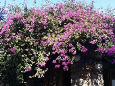 Ανεβαίνοντας από την Υψηλάντου το στενό της Ερισσού, μας υποδέχεται στην γωνία με το πεζόδρομο της Ηφαίστου, η επιβλητική ΒΟΥΚΑΜΒΙΛΙΑ!