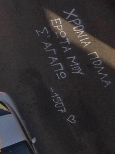 Νέοι και, ποιος ξέρει, ίσως και ώριμοι πολίτες, δηλώνουν την αγάπη τους σε όλους τους τόνους. “Σε αγαπώ”, σε λατρεύω”, “έρωτά μου” και ένας αριθμός από δίπλα, ελπίζουμε όχι από αριθμό κυκλοφορίας, για να κάνουμε ένα χωρατό να γελάσουμε λίγο.